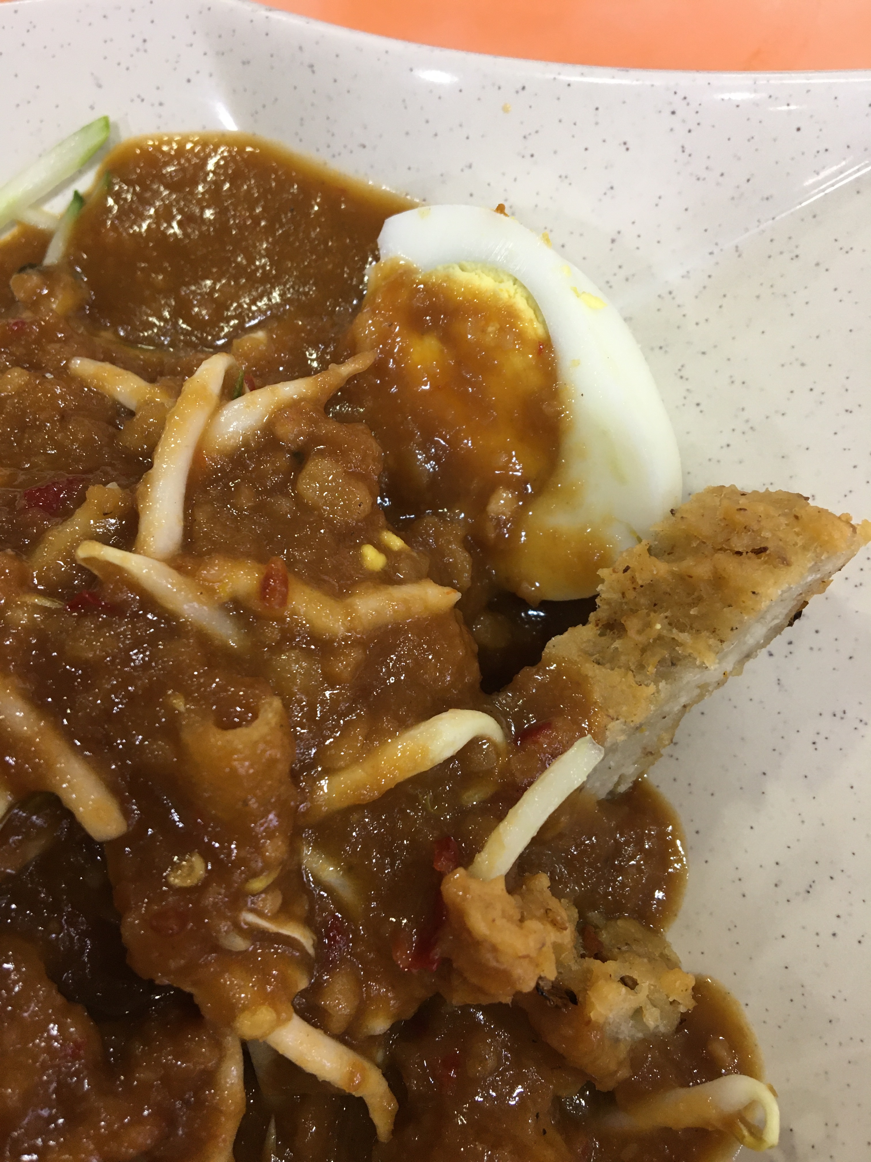 湯底我覺得更像係咖喱參叻沙,配料上是以煎蛋皮,叉燒,雞絲,香菜同三巴(Sambal醬)配佶仔(Lime),完全別於傳統的檳城叻沙常規配料-青瓜絲,黃梨片,洋蔥絲,薄荷葉,辣椒絲,生菜絲,同靈魂蝦膏。