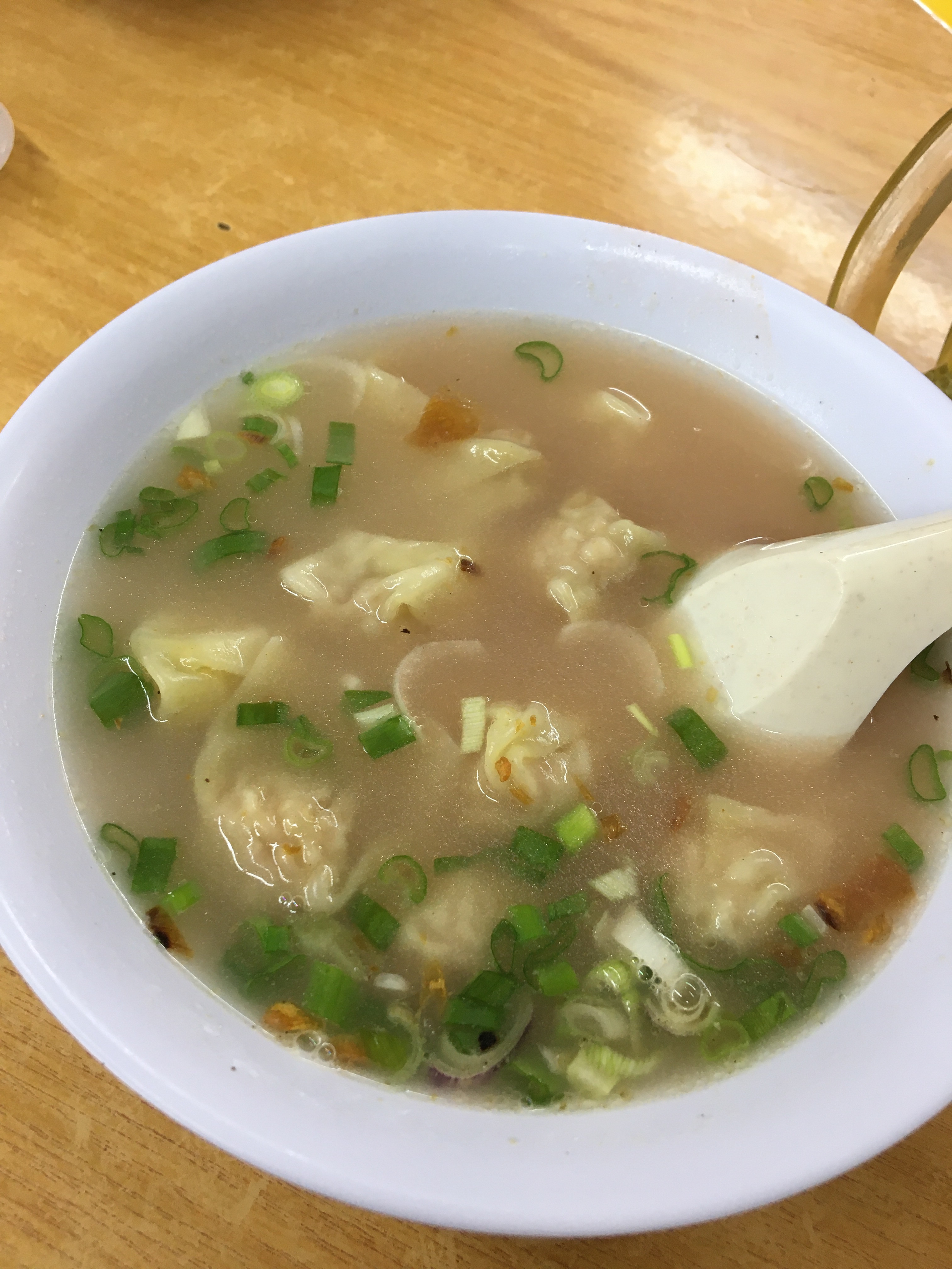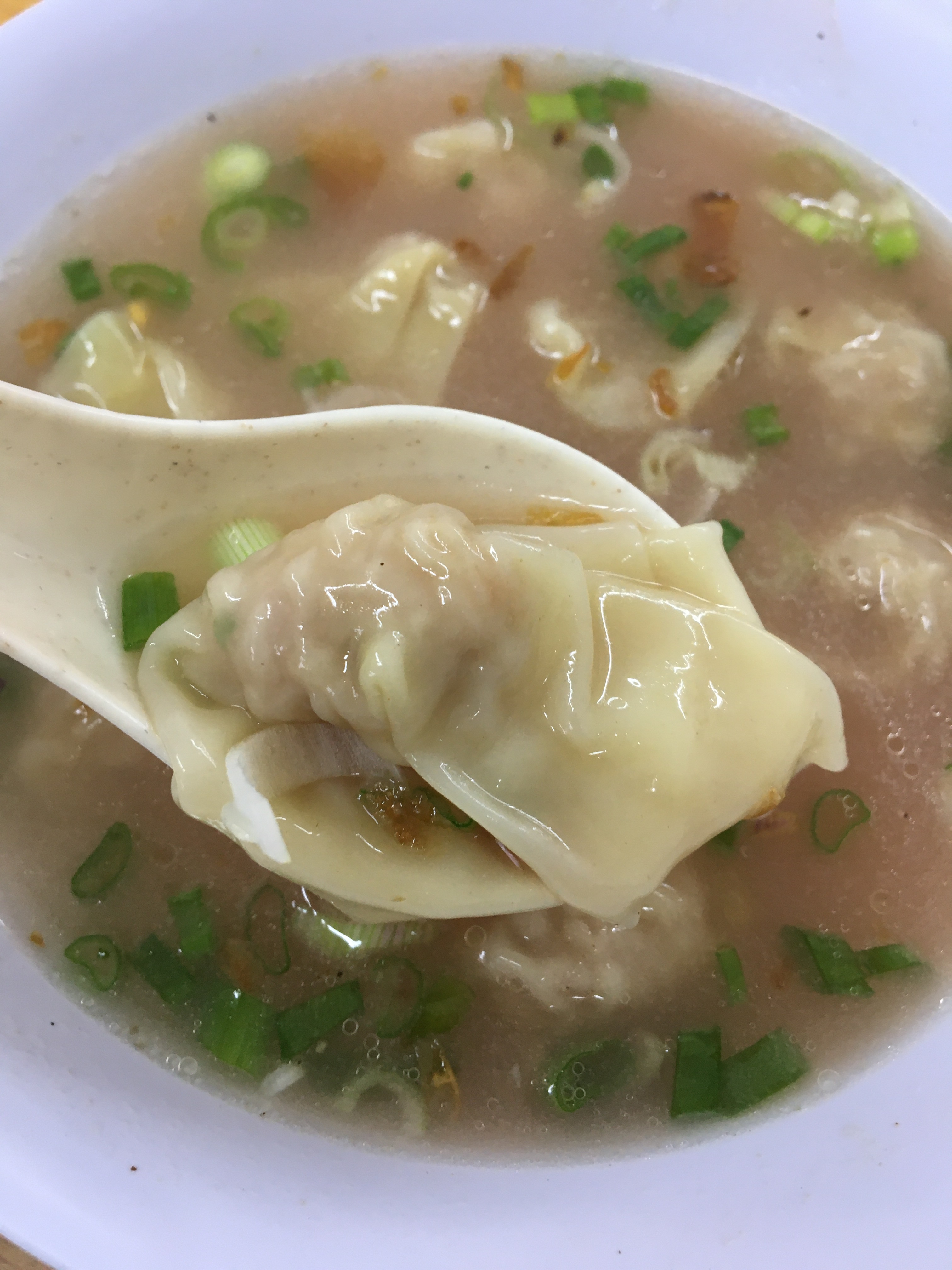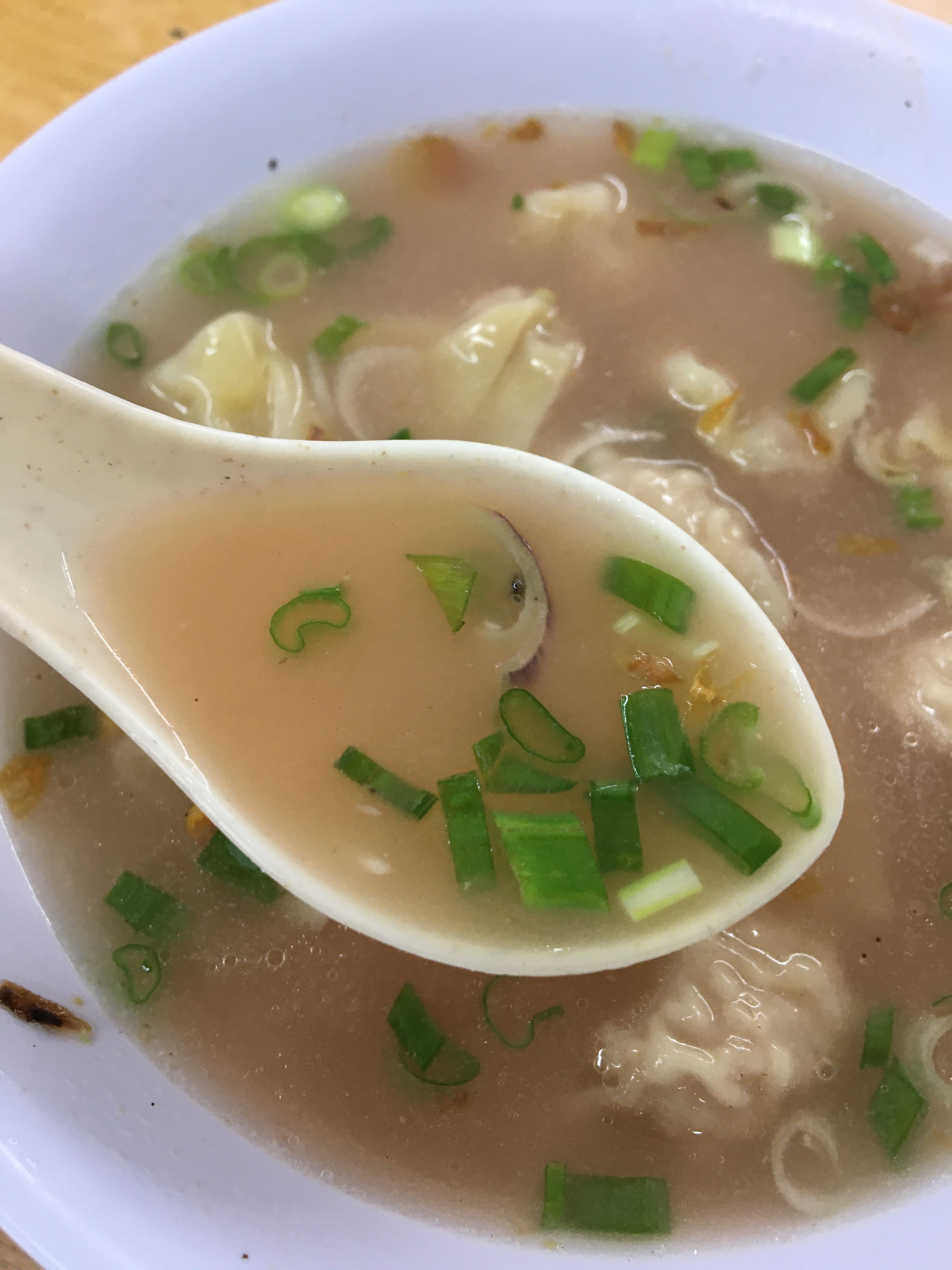 首先,我十分鍾意食扁肉(類似於雲吞),一係肉餡醃的夠味,二係湯底有加上紅酒,兩者配合的十分開胃。再來乾盤麵係自家製,麵條唔煮的太軟,保留返麵勁的嚼勁,再將同樣係自家牌的炸洋蔥,叉燒,肉碎,青蔥連同豬油醬油攪拌,可想而知味道係幾咁豐富!